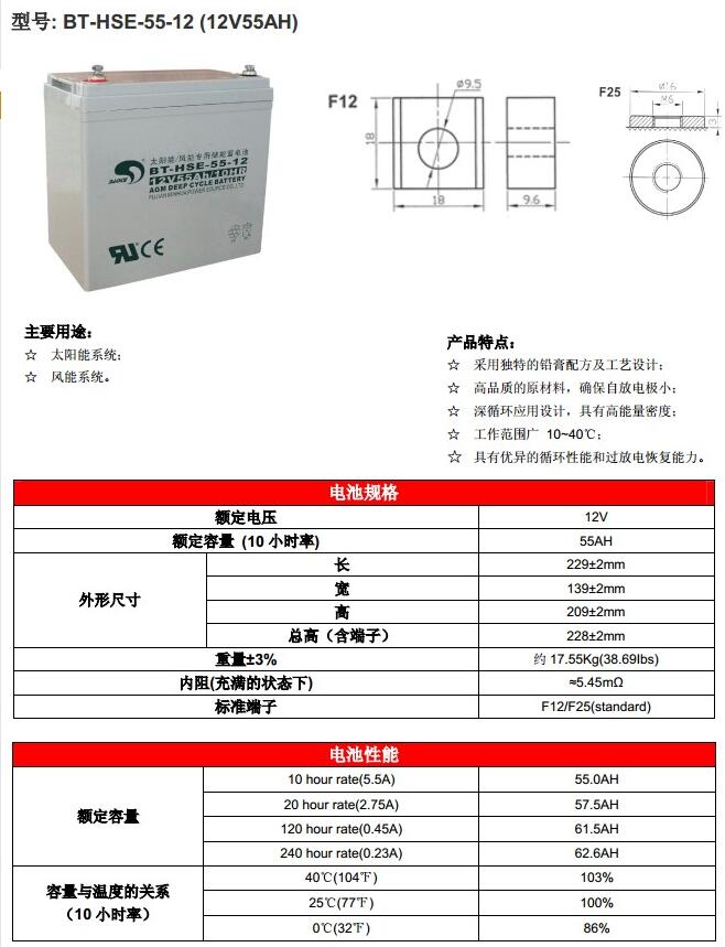 赛特蓄电池BT-HSE-55-12 赛特12V55Ah/10HR详细参数