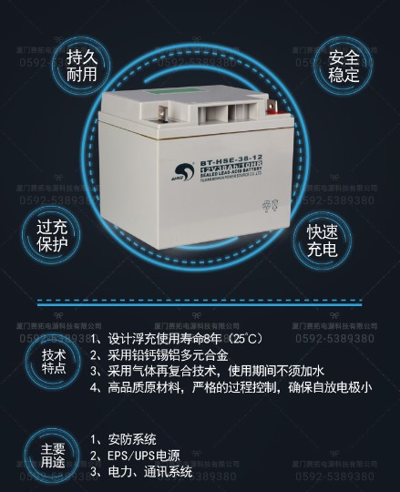 赛特蓄电池BT-HSE-38-12 赛特12V38Ah电力工程直流系统专用电池