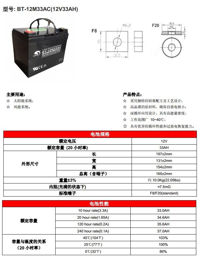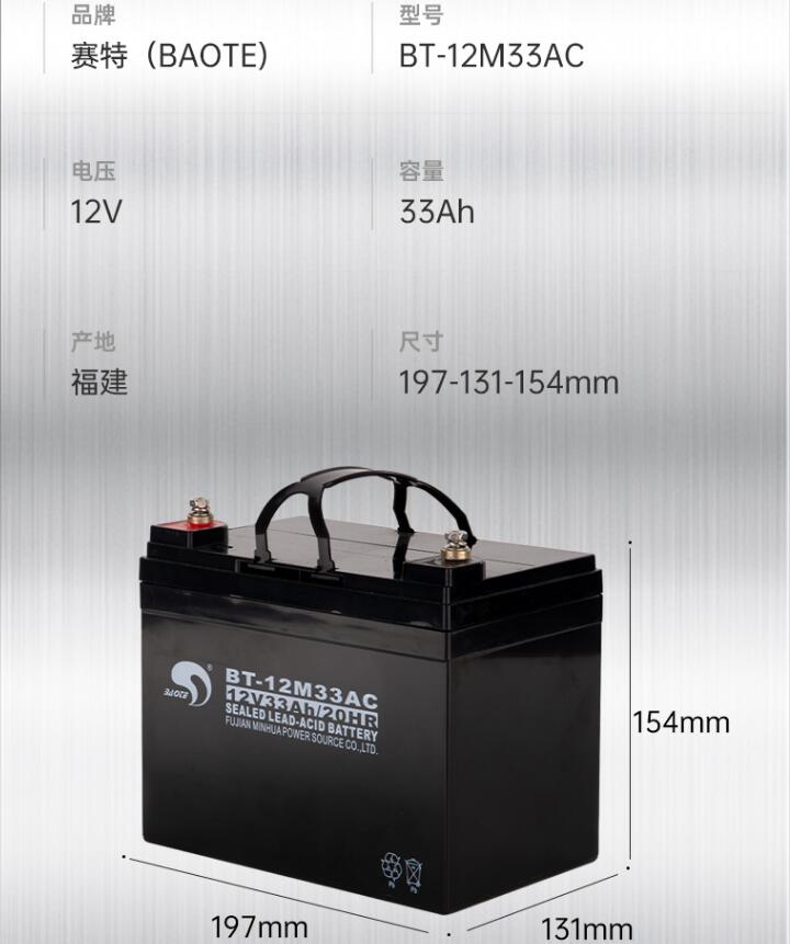 赛特蓄电池BT-12M33AC 赛特12V33Ah详细参数:
