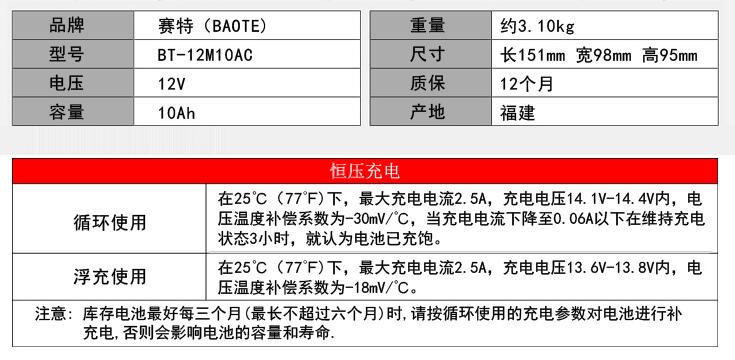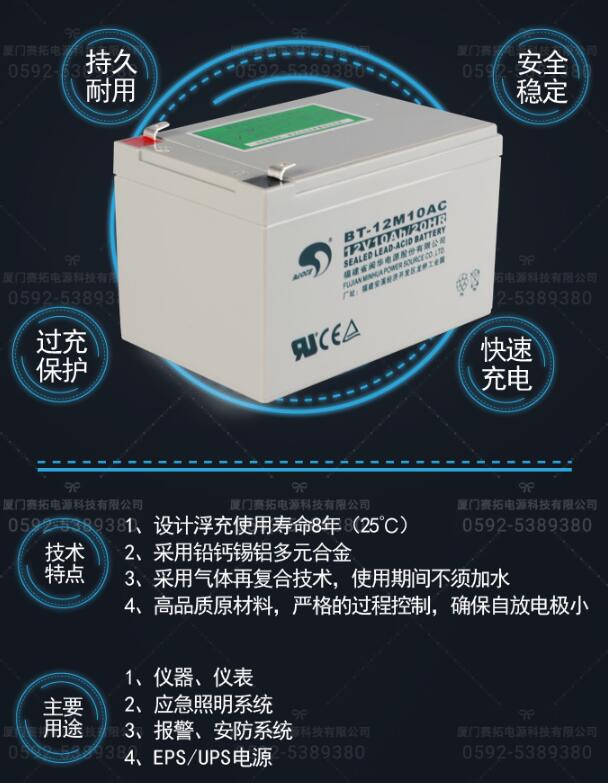 赛特蓄电池BT-12M10AC(12V10Ah/20HR)消防/电梯/UPS用铅酸蓄电池
