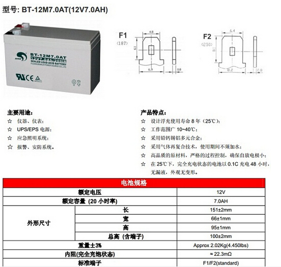 赛特蓄电池BT-12M7.0AT(12V7.0Ah20HR)UPS/电梯/消防用蓄电池