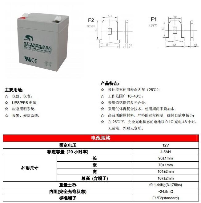 赛特蓄电池BT-12M4.0AC(12V4.0Ah/20HR)电梯/卷帘门/UPS/消防用蓄电池